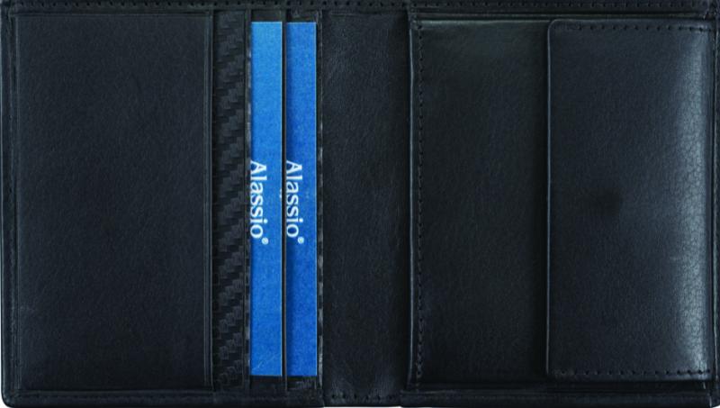 Artikelbeschreibung:Carbon Optik innen, 3 Visitenkartenfächer, Scheinfach, 2 verdeckte Einschubfächer, Münzfach, Maße: (B)90 x (T)10 x (H)100 mm