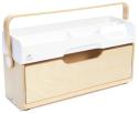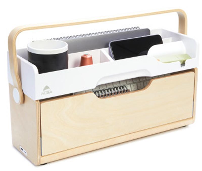 Artikelbeschreibung:aus Holz, ABS-Kunststoff und PET, mit selbstblockierendem Tragegriff, bestehend aus 2 trennbaren Modulen: 1 Modul mit 3 Fächern, 1 Modul mit Bildschirmerhöhung, 2 USB-Anschlüsse, Maße: (B)450 x (T)150 x (H)225 mm, Gewicht: 2,20 kg (DKBOX)