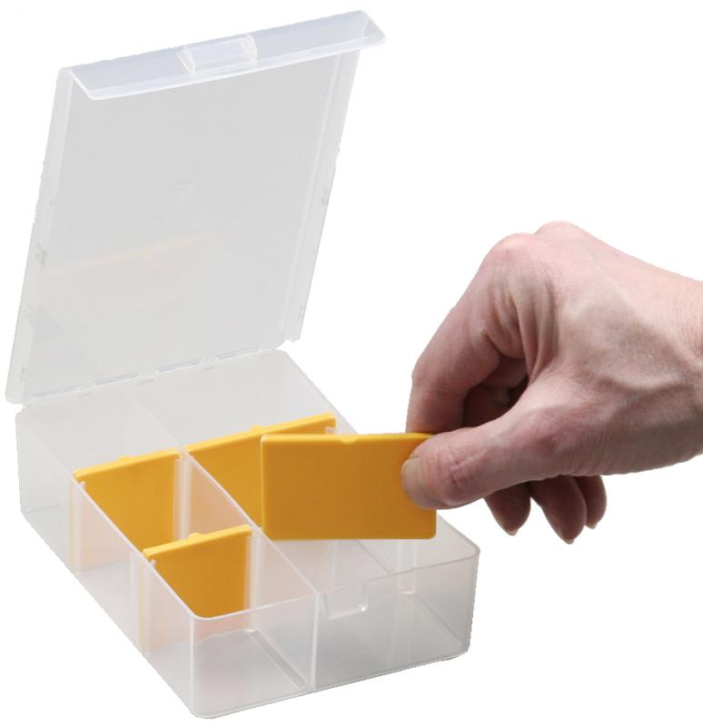 Artikelbeschreibung:transparenter, hochschlagfester Polypropylen, individuelle Einteilung mit 12 Trennstegen, sichere Sortierung: Fächer schließen mit Deckel ab, Maße: (B)290 x (T)185 x (H)46 mm