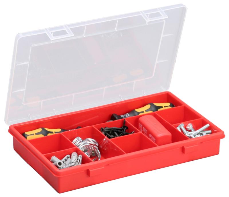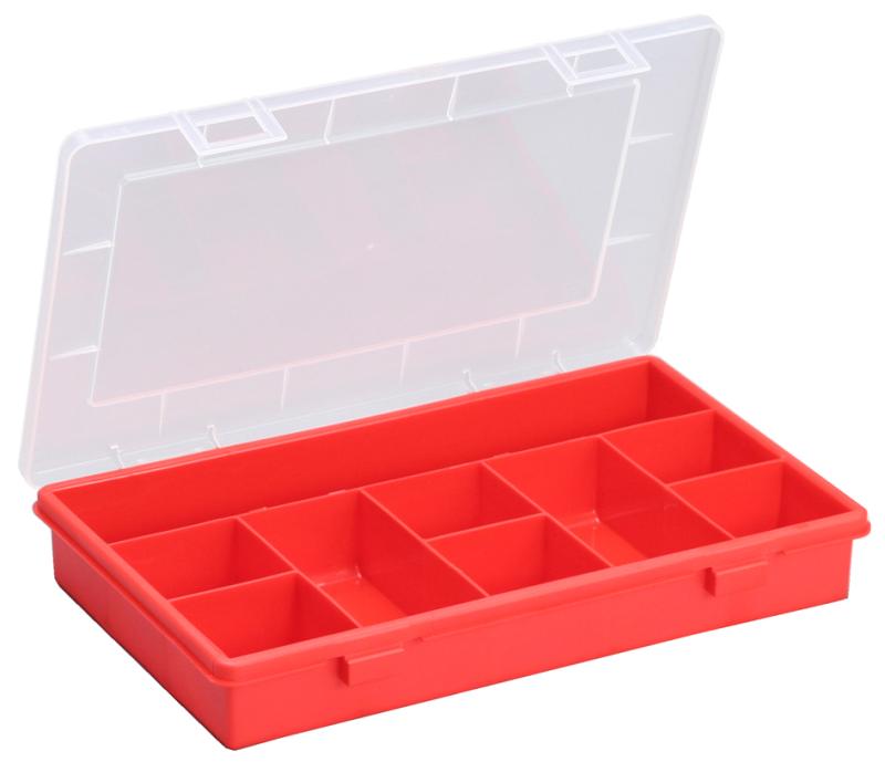 Ausführung: 9 Fächer, Maße: (B)290 x (T)185 x (H)46 mm, Farbe: rot / transparent,
