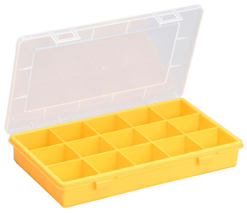 Artikelbeschreibung:hochschlagfester Polypropylen, 9 Fächer, feste Einteilung, sichere Sortierung: Fächer schließen fest mit Deckel ab, Maße: (B)290 x (T)185 x (H)46 mm