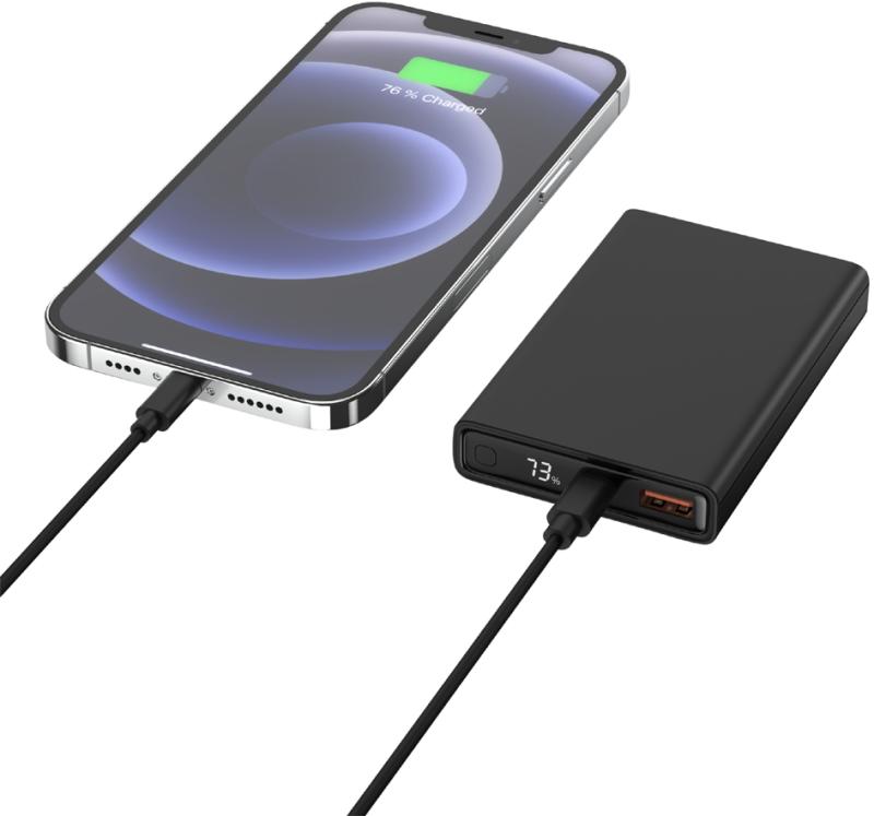 Artikelbeschreibung:Eingang: USB-C Kupplung (5-12 V DC/2A), Ausgang: USB-A & USB-C (5-12V DC), Leistung: bis zu 22,5 Watt, LED Display mit Prozent genauer Kapazitätsanzeige, inkl. USB-C Ladekabel (1700-0154) mobiler Zusatzakku
