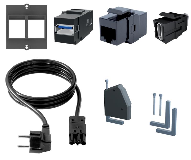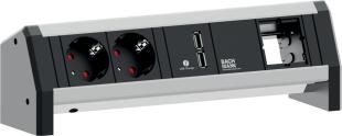 Artikelbeschreibung:- für den Markt: D / NL / A / L - 2 x USB Ladebuchse, 2 x Schutzkontakt, 1 x konfigurier- bares Modul, Steckdose in 35 Grad-Anordnung, 16A / 230V Stromanschluss, mit GST18 16A Buchsen, Länge Leiste: 282 mm