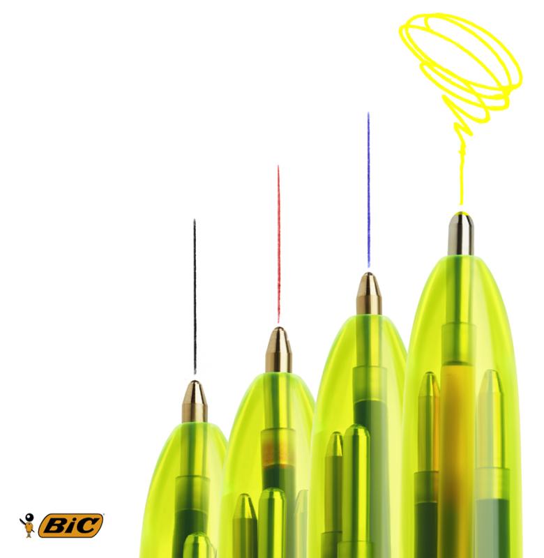 Ausführung: Druckmechanismus, Strichstärke: 0,32 mm / 0,42 mm bei neongelb, Strichfarbe: blau / schwarz / rot / neongelb, Gehäusefarbe: neongelb / weiß,