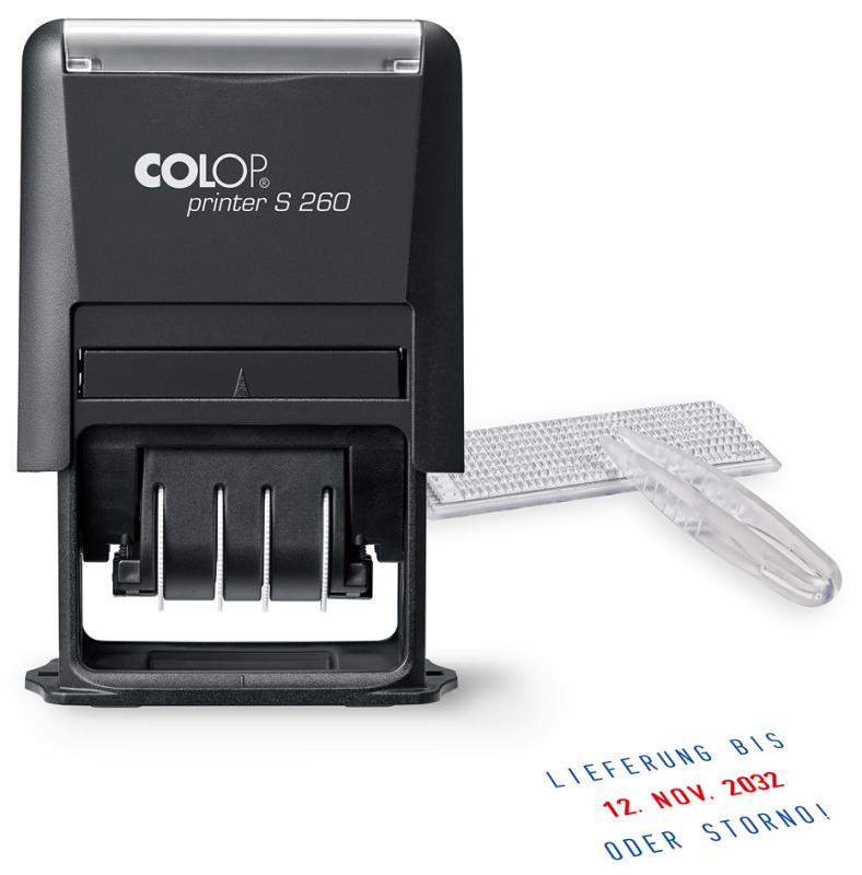 Artikelbeschreibung:- für den Markt: D / L / A / CH - zum Selbersetzen, Datumhöhe: 4 mm, Abdruckgröße: 24 x 45 mm, Zeilenanzahl: 2, Anzahl Buchstaben pro Zeile: 16, inkl. Stempelkissen blau/rot, 1 Satz Typenset TS40/4 mm, Pinzette Datum in Buchstaben passendes Ersatzstempelkissen: E/200/2