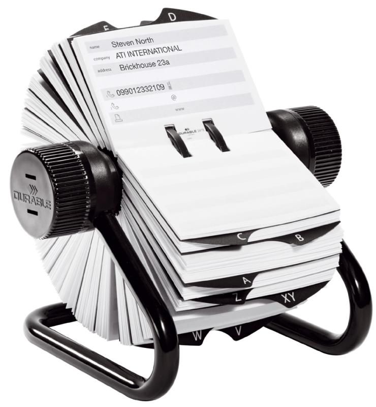 Artikelbeschreibung:für Telefon- und Adresseinträge, mit stabilem Metall- Rohrrahmen, inkl. 25-teiligem A-Z Register in schwarz, inkl. 500 beidseitig bedruckten Karteikarten im Format 104 x 72 mm, Maße: (B)195 x (T)190 x (H)120 mm (2482-01)