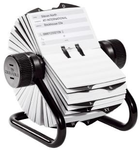 Artikelbeschreibung:für Telefon- und Adresseinträge, mit stabilem Metall- Rohrrahmen, inkl. 25-teiligem A-Z Register in schwarz, inkl. 500 beidseitig bedruckten Karteikarten im Format 104 x 72 mm, Maße: (B)195 x (T)190 x (H)120 mm (2482-23)