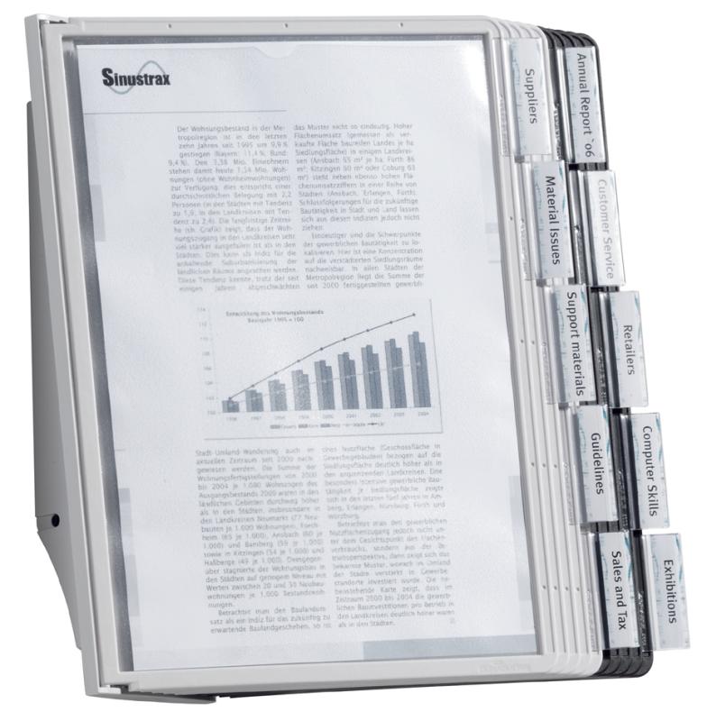 Ausführung: Wandbefestigung, Format: A4, Inhalt: mit Sichttafeln, Farbe: grau / farbig sortiert,