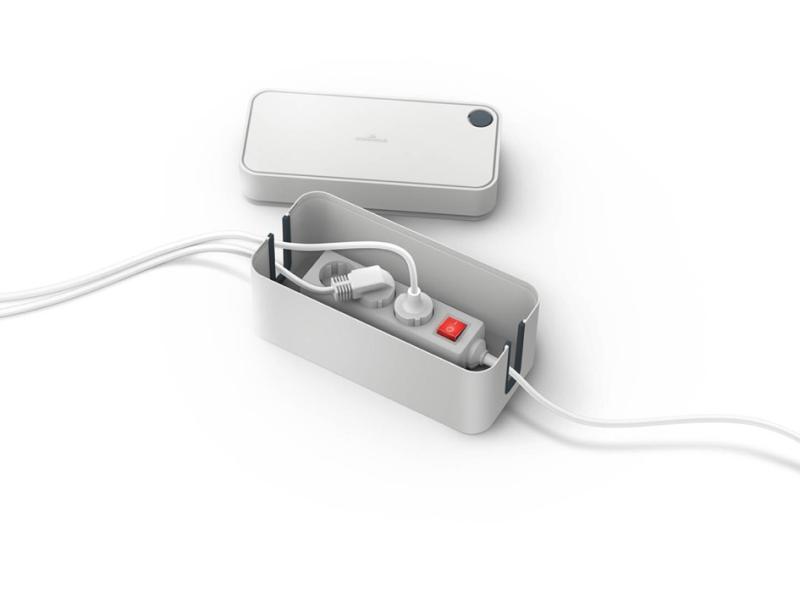 Artikelbeschreibung:flammhemmender Kunststoff, für Kabel und 3-fach Steckdosen- leiste geeignet, beidseitig gummierte Kabelauslassschlitze, Deckel mit praktischer runder Kabelöffnung für Ladekabel, Maße: (B)246 x (T)128 x (H)116 mm große Gummifüße für rutschfesten Stand