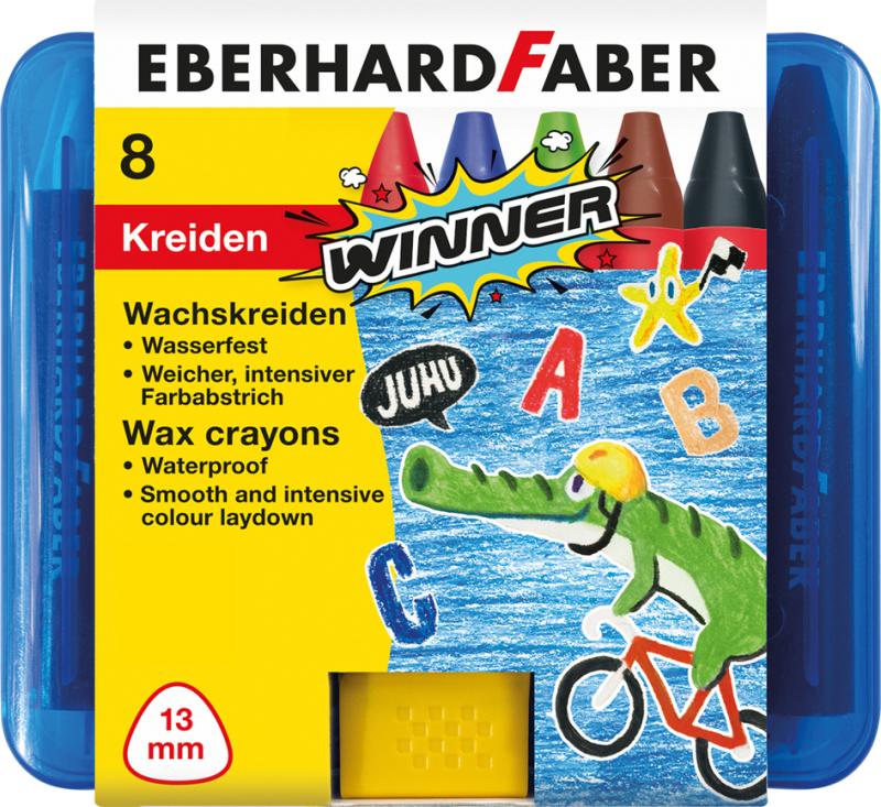 Artikelbeschreibung:dreieckig, mit Papierbanderole, Minenstärke: 13 mm, wasserfest, ergonomische Griffzone, bruchsicher, leuchtende Farben, im Kunststoffetui, beinhaltet: 8 Stück