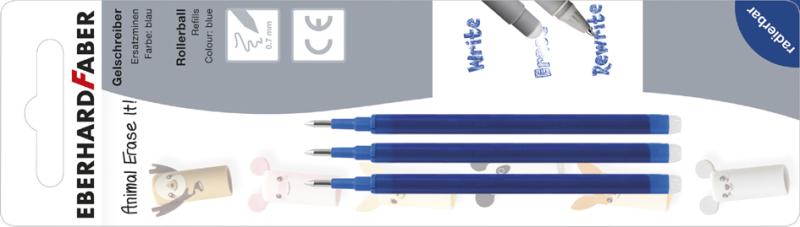Artikelbeschreibung:Strichstärke: 0,7 mm, Schreibfarbe: blau, das Geschriebene kann wegradiert werden, Inhalt: 3 Stück auf Blisterkarte