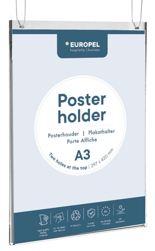 Artikelbeschreibung:aus kristallklarem PMMA Acryl, mit 2 Löchern versehen, für zweiseitige Präsentation, ideal für Schaufenster, schneller Austausch der Dokumente - einfach seitlich einschieben, Maße: (B)297 x (H)420 mm