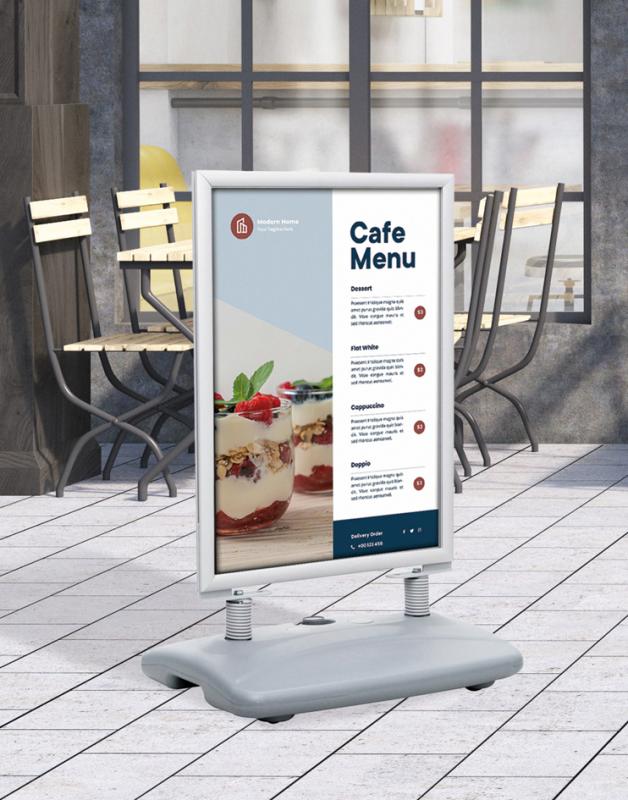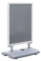 Artikelbeschreibung:hochwertiger Klapprahmen mit Gehrungsecken aus eloxiertem Aluminium, Profilbreite: 35 mm, mit Kunststoff-Rückwand, für Papierformat A1 Maße: (B)900 x (T)60 x (H)1.250 mm Sockel aus ABS-Kunststoff, mit Wasser oder Sand befüllbar, Metallfedern für mehr Felxibilität