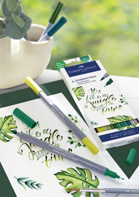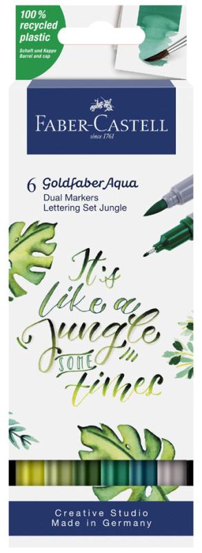 Artikelbeschreibung:wasserbasierter Aqua Dual Marker mit zwei Spitzen, weiche flexible Pinselspitze und metallgefasste Finelinerspitze 0,6 mm, wasservermalbar, geruchsneutral, ph-neutral Inhalt: 6 Marker