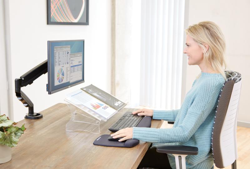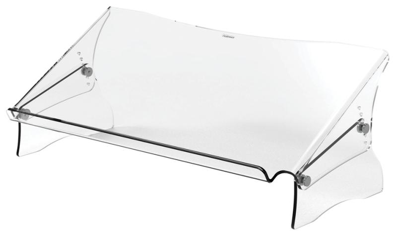Artikelbeschreibung:glasklar, maximiert den Platz auf dem Schreibtisch, 6 Höhen- & Winkeleinstellungen (160 - 235 mm), bis Format DIN A3, Tragkraft: 6 kg, Maße: (B)536 x (T)378 x (H)160 - 235 mm