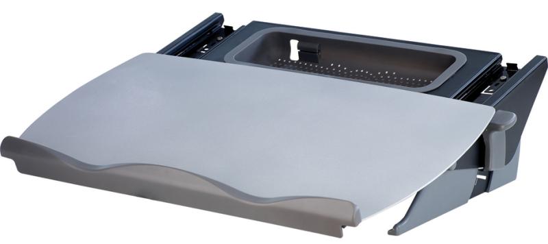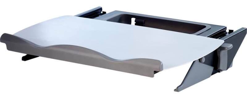 Artikelbeschreibung:2-in-1 Nutzen: Plattform gleitet stufenlos nach vorne zur Abdeckung der Tastatur und schafft eine ergonomische Schreibunterlage, Sichtfeld-Dokumentenhalter mit Tragkraft: 5 kg, Winkel einstellbar:7,5 Grad bis 37,5 Grad, inkl. herausnehmbarem Zubehörfach Maße: (B)562 x (T)342 x (H)116 mm