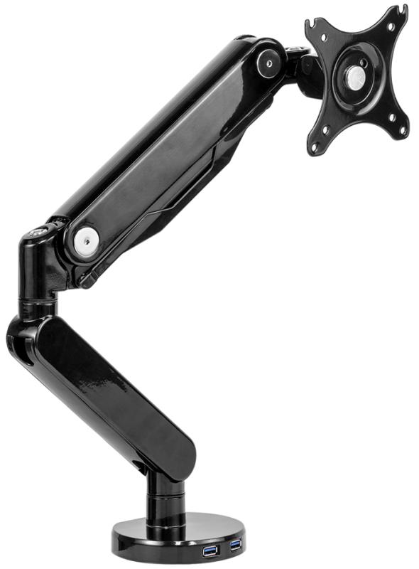 Artikelbeschreibung:für Monitore bis 81,82 cm (32`), Tragkraft: 8 kg, Gasfeder Technologie, um 360 drehbar, mit 2 USB Ports, Neigung: +/- 45 Grad, 180 Grad schwenkbar, intuitives Kabelmanagement, VESA Standard 75 x 75 mm / 100 x 100 mm Montage über Klemme oder die Kabeldurchführung