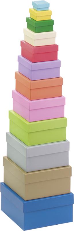 Artikelbeschreibung:aus starkem Karton, 12-teilig, Maße größtes Herz: 135 x 155 x 75 mm, Maße kleinstes Herz: 35 x 45 x 20 mm, mit Deckel, ineinander gestapelt sortiert in den Farben violett, hellgrün, blau, lachs, dunkelgrün, silber, gold, gelb, hellblau, pink, beige, rot