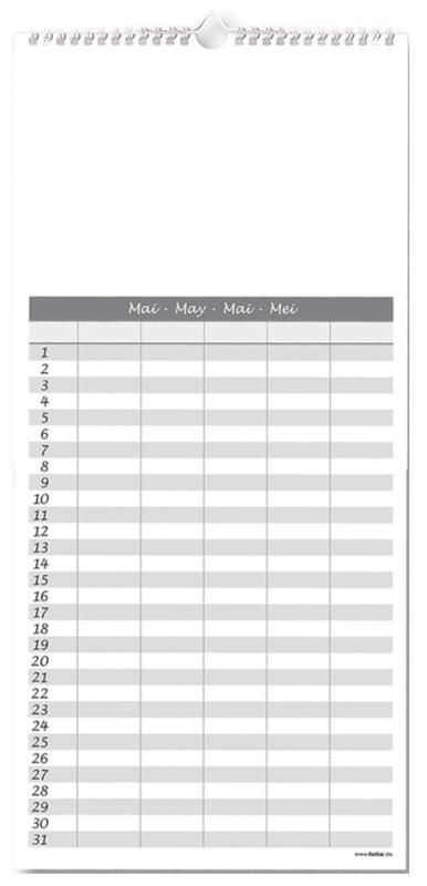 Ausführung: immerwährend, Kalendarium: Monatskalender, Format: 230 x 490 mm, Farbe: weiß,