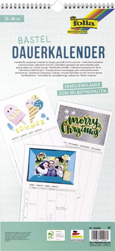 Artikelbeschreibung:Kreativ-Kalender zum Selbstgestalten, 13 Blatt + 1 zusätzliches Deckblatt, 170 g/qm, Spiralbindung Planung für max. 5 Personen, immerwährendes Kalendarium