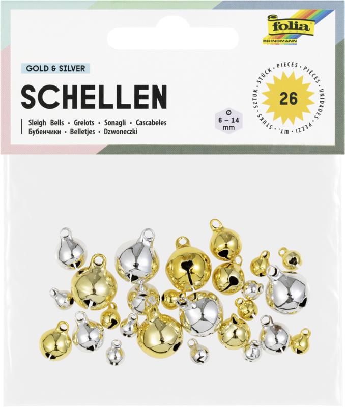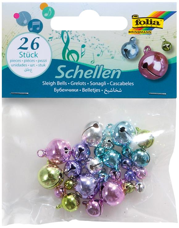 Artikelbeschreibung:Schellen mit Messingbeschichtung, sortiert in den Farben: rosa, silber, lila, hellblau und hellgrün, sortiert im Durchmesser: 6 mm, 10 mm und 14 mm Inhalt: 26 Stück