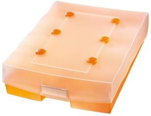 Ausführung: A8 quer, Maße: (B)215 x (T)300 x (H)68 mm, Farbe: orange-transluzent,