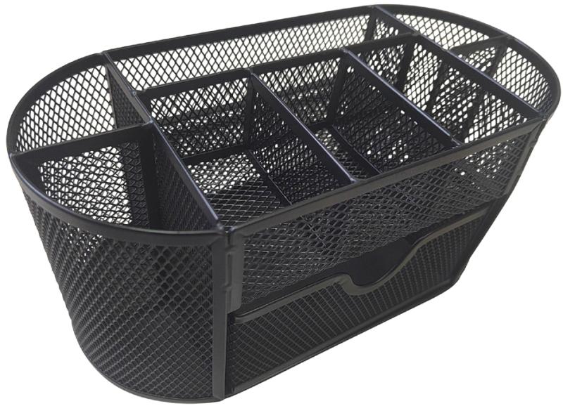 Artikelbeschreibung:aus pulverbschichtetem Drahtmetall / Mesh-Stahl, mit 8 Fächern & 1 ausziehbaren Schubladenfach, Maße: (B)235 x (T)115 x (H)100 mm (H2519695)