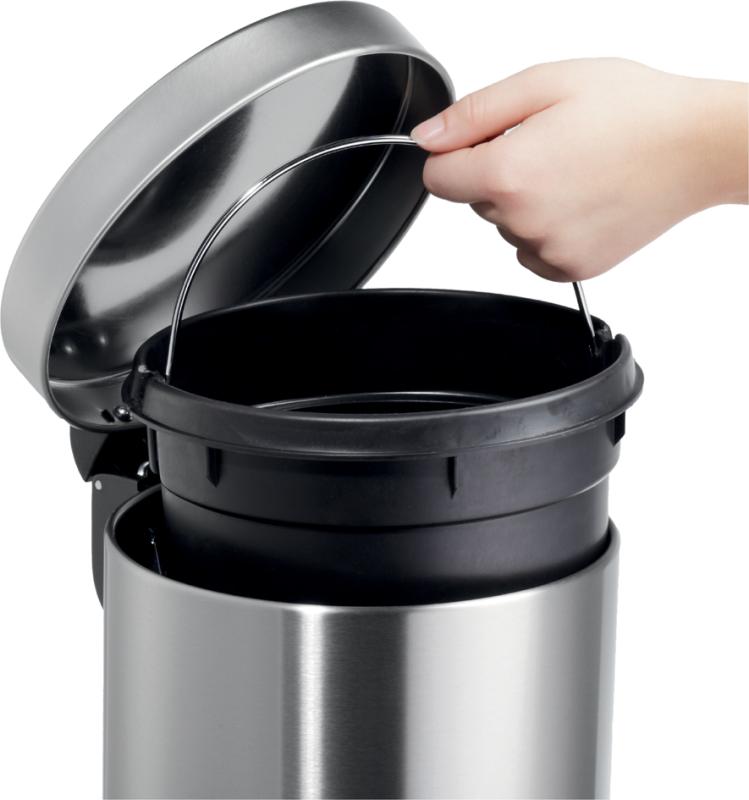Artikelbeschreibung:Tretabfalleimer, aus pulverbeschichtetem Stahlblech, herausnehmbarer Innenbehälter aus Kunststoff, Kunststoff- scharnier mit Transportgriff, leise schließender Deckel, Kunststoffsockel, Durchmesser: 250 mm, Höhe: 405 mm (H2403505)