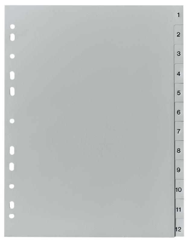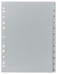 Material: Kunststoff, Ausführung: 12-teilig, Format: A4, Lochung: Eurolochung, Farbe: grau,