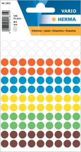Ausführung: permanent, Maße (B x H): Durchmesser: 19 mm, Farbe: weiß / rot / blau / gelb / grün, VE / Etiketten: 100 Stück, VE / Blatt: 5 Blatt,