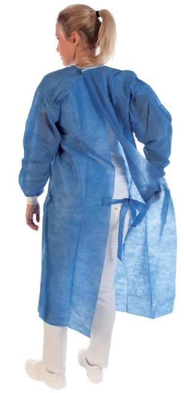 Artikelbeschreibung:aus SMS (Polypropylen, Meltblown, Polypropylen), wasserabweisend, atmungsaktiv, sterilisierbar, Bündchen am Arm, Umfang: 1.200 mm, Länge: 1.250 mm, einzeln verpackt