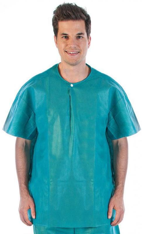 Artikelbeschreibung:aus SMS (Polypropylen, Meltblown, Meltblown, Polypropylen), sehr blickdicht, luftdurchlässig, angenehm zu tragen, dicht gegen Flüssigkeiten, Druckknopf am Kragen, mit Brusttasche und 2 Eingrifftaschen vorne