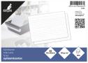 Artikelbeschreibung:aus Karton, 190 g/qm, rote Kopfzeile, blau/graue Lineatur Format: 105 x 148 mm beinhaltet: 100 Stück (K-6103)