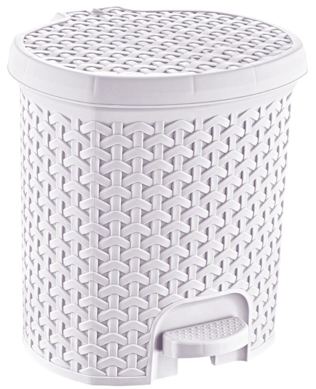 Artikelbeschreibung:Tret-Abfalleimer, Rattan-Optik, mit Tretpedal, Material: PP, Maße: (B)240 x (T)225 x (H)260 mm
