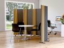 Artikelbeschreibung:geräuschgedämpfter Raumteiler durch Paneel auf Vorder- & Rückseite, stabile Spanplatte mit Melaminharzbeschichtung, Dekorblenden aus recyceltem PET & Holzstreifen in hellem Eichedekor (300 mm tief), Fuß aus pulverbeschichtem Stahl