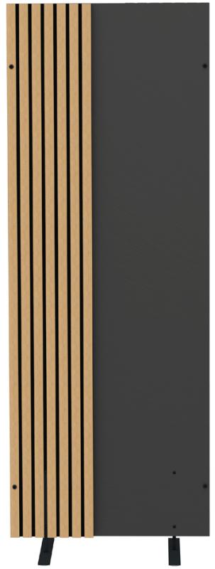 Artikelbeschreibung:geräuschgedämpfter Raumteiler durch Paneel auf Vorder- & Rückseite, stabile Spanplatte mit Melaminharzbeschichtung, Dekorblenden aus recyceltem PET & Holzstreifen in hellem Eichedekor (300 mm tief), Fuß aus pulverbeschichtem Stahl