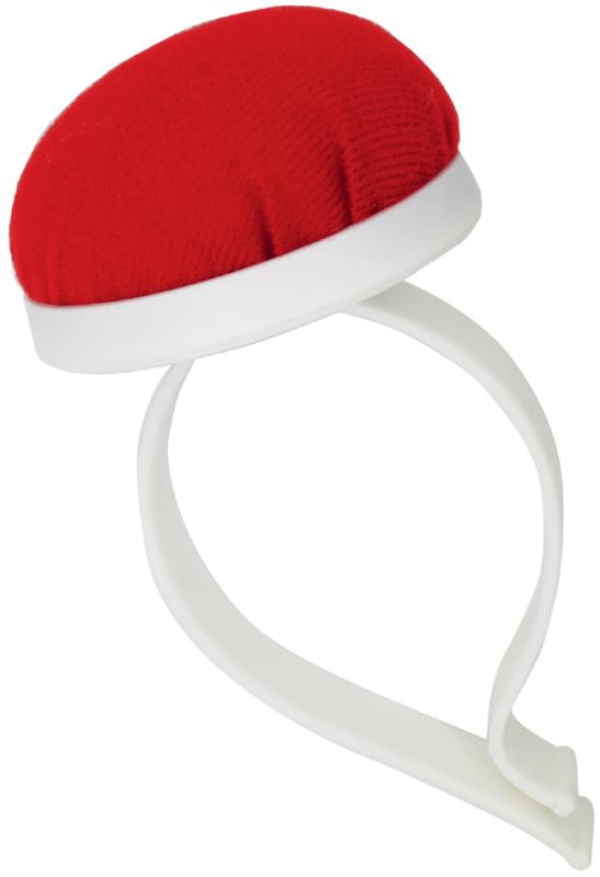 Artikelbeschreibung:rotes Baumwollkissen, weiße Kunststoffspange zum Tragen am Handgelenk, Durchmesser: 60 mm, Höhe: 120 mm