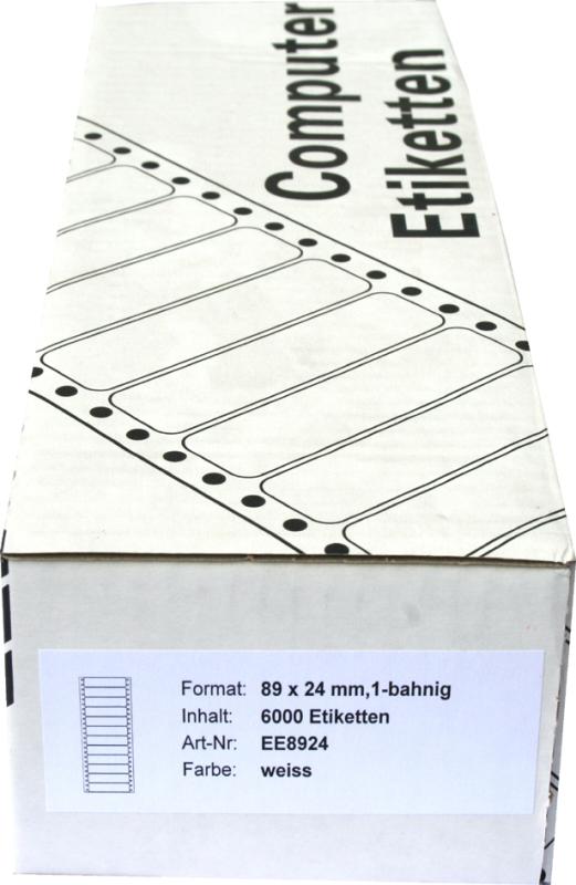Ausführung: 1-bahnig, Maße: 89,0 x 36,0 mm, Farbe: weiß, VE: 4.000 Etiketten,