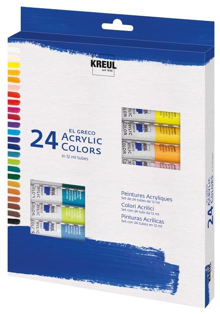 Artikelbeschreibung:auf Wasserbasis, schnell trocknend, glänzend, leuchtkräftig, lichtbeständig, wasserverdünnbar, untereinander mischbar, deckend und lasierend vermalbar, farbig sortiert, Alu-Tube beinhaltet: 24 Stück je 1 x titanweiß, elfenbein, echtgelb zitron, kadmiumgelb, indischgelb, pastellrosa, zinnoberrot, echtrot, magenta, krapprot, brillantviolett, azurblau, ultramarinblau, kobalt- blau dunkel, türkisblau dunkel, zinnobergrün hell, chrom- oxidgrün, laubgrün, lichter ocker, siena natur, siena ge- brannt, umbra gebrannt, vandyckbraun, schwarz