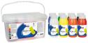 Artikelbeschreibung:auf Wasserbasis, schnell trocknend, licht- und kalkecht, leicht fließend, trocknet tiefmatt auf, Farben sind untereinander mischbar, nach dem Trocknen wetterfest, beinhaltet: 8 x 750 ml farbig sortiert in weiß, echtgelb, echtorange, echtrot, ultramarinblau, permanentgrün, oxydbraun und schwarz