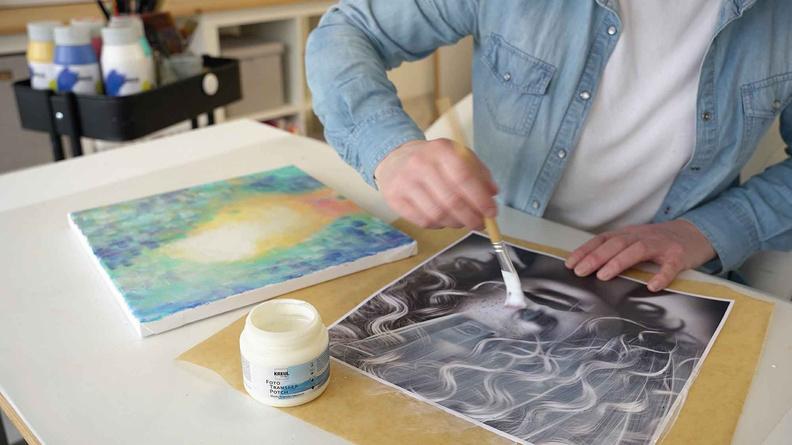 Artikelbeschreibung:auf Wasserbasis, trocknet seidenglänzend, transparent und wasserfest auf, zum Übertragen von Fotoausdrucken und Kopien aus dem Laserdrucker z. B. auf Keilrahmen, Holz, Keramik, Metall, Glas, Porzellan
