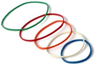 Artikelbeschreibung:Gummiringe sortiert in weiß, rot, grün, orange und blau, Größen im Durchmesser von 30 mm, 40 mm, 45 mm, 50 mm, 60 mm beinhaltet: 95 Stück