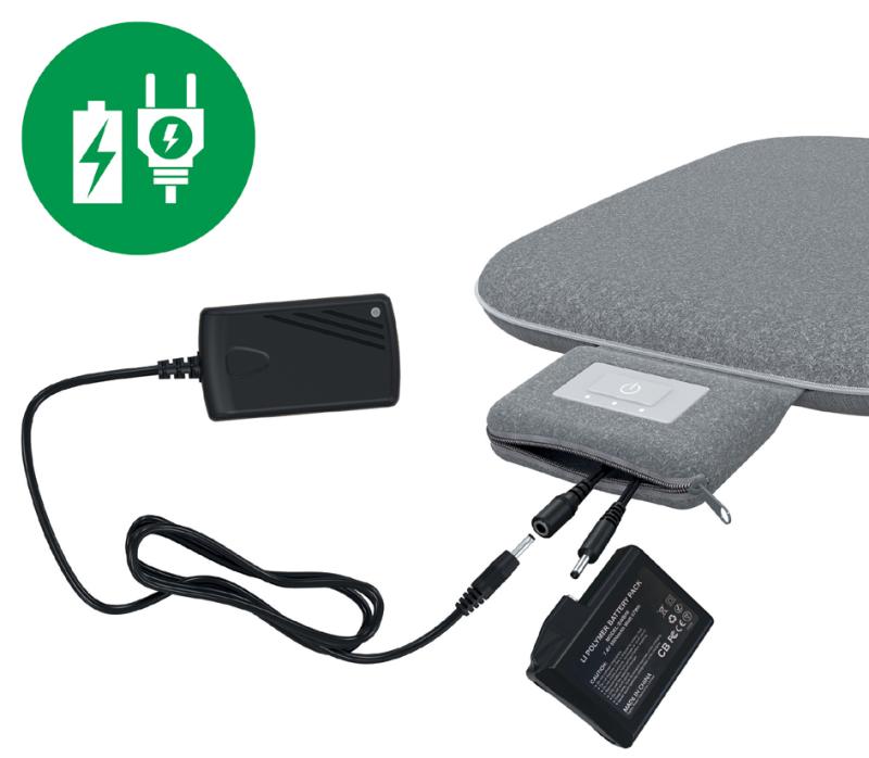 Artikelbeschreibung:Kohlefasertechnolgie, annehmbarer Stoffbezug aus Polyester, 3 Einstellungen: 43 Grad / 40 Grad / 37 Grad, Akkulaufzeit: 5 Stunden, Maße: (B)300 x (T)400 x (H)30 mm, inkl. Ladegerät mit Eurostecker & 7,4 V Lithium-Ionen Akku