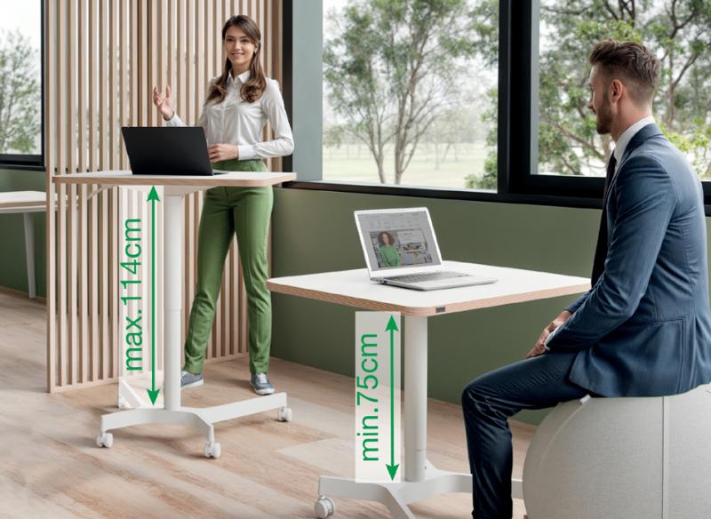 Artikelbeschreibung:höhenverstellbar von 750 - 1.140 mm, Maße Tischplatte: (B)800 x (T)600 x (H)25 mm, Belastbarkeit: max. 20 kg, mit Kreuz-Fußgetell, mit 4 feststellbaren 360 Grad Rollen, Lieferung erfolgt zerlegt