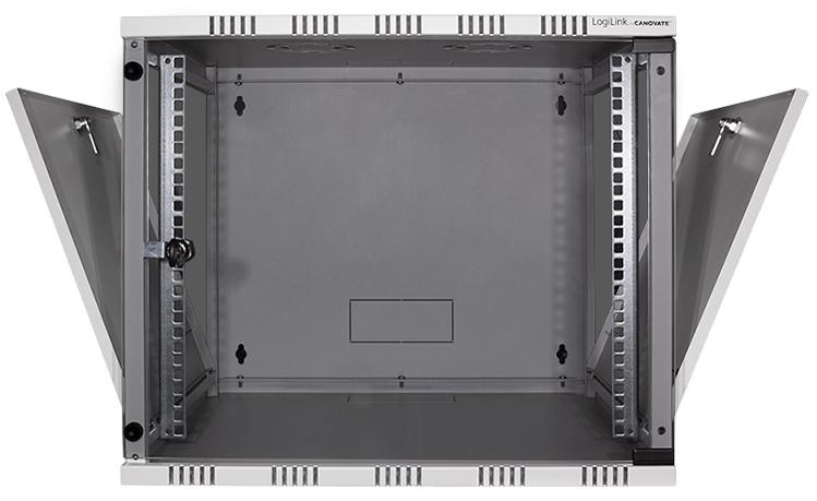 Einbauhöhe: 12 HE, Ausführung: Glastür, Belastbarkeit: 50 kg, Breite x Tiefe: 540 x 550 mm, Höhe: 589 mm, Farbe: grau (RAL7035),