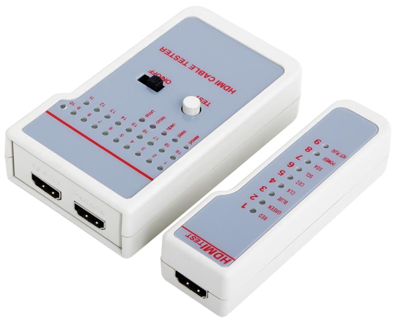 Artikelbeschreibung:zum Überprüfen von HDMI-Kabeln, mit optischen und akkusti- schen Signalen, Verbindungstest mit Anzeige über LED, Betrieb mit 9 V Block (nicht im Lieferumfang), Test per Knopfdruck, ideal für bereits verlegte Kabel, inkl. Tasche, Farbe: weiß/grau (WZ0017)