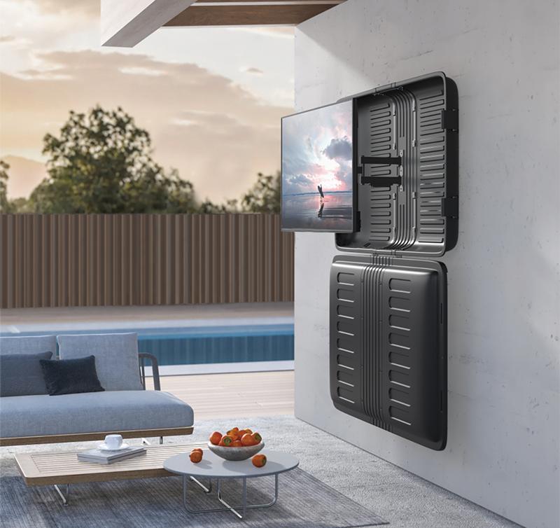 Artikelbeschreibung:für TVs von 81,28 - 139,70 cm Größe, staub- & witterungs- geschütztes, für Außenbereich, Wand- oder Ständermontage, Tragkraft: 50 kg, mit Frontabdeckung, Material: Stahl, ABS+ASA, Maße: (B)1.405 x (T)205 x (H)890 mm (BP0165)