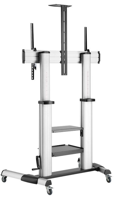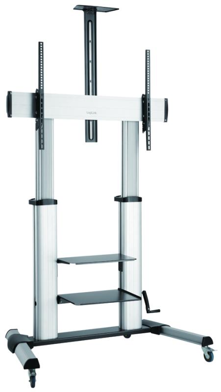 Artikelbeschreibung:(60` - 100`), Neigung: -10 Grad / + 5 Grad, Standfuß mit 4 feststellbaren Schwerlastrollen, TV Höhe einstellbar, Belastbarkeit: max. 100 kg, aus Stahl, Aluminium & Kunst- stoff, schwarz/grau, Maße: (B)1.138 x (T)700 x (H)2.366 mm (BP0084)
