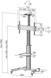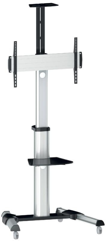 Artikelbeschreibung:(37` - 70`), Neigung - 12 Grad / + 5 Grad, Drehung 0 Grad / + 90 Grad, Standfuß mit Rollen, TV Höhe über Standfuß einstellbar, Belastbarkeit: max. 50 kg, aus Stahl, schwarz / silber, inkl. Befestigungsmaterial (BP0025) unterstützt VESA Standard 600 x 400 mm