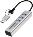 Artikelbeschreibung:Eingang: 2-in-1 Kabel mit USB-A/USB-C Stecker (150 mm), Ausgang: 3x USB-A Kupplung, 1x SD- & 1x microSD Steckplatz, mit Geräteschutz, Aluminiumgehäuse, Maße: (B)23 x (T)99 x (H)16,5 mm (UA0445)
